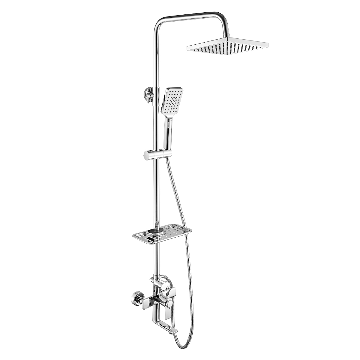 Завершает комплект стойка или штанга: для крепления верхней лейки, которая может быть фиксированной или регулируемой по высоте под рост каждого члена семьи.