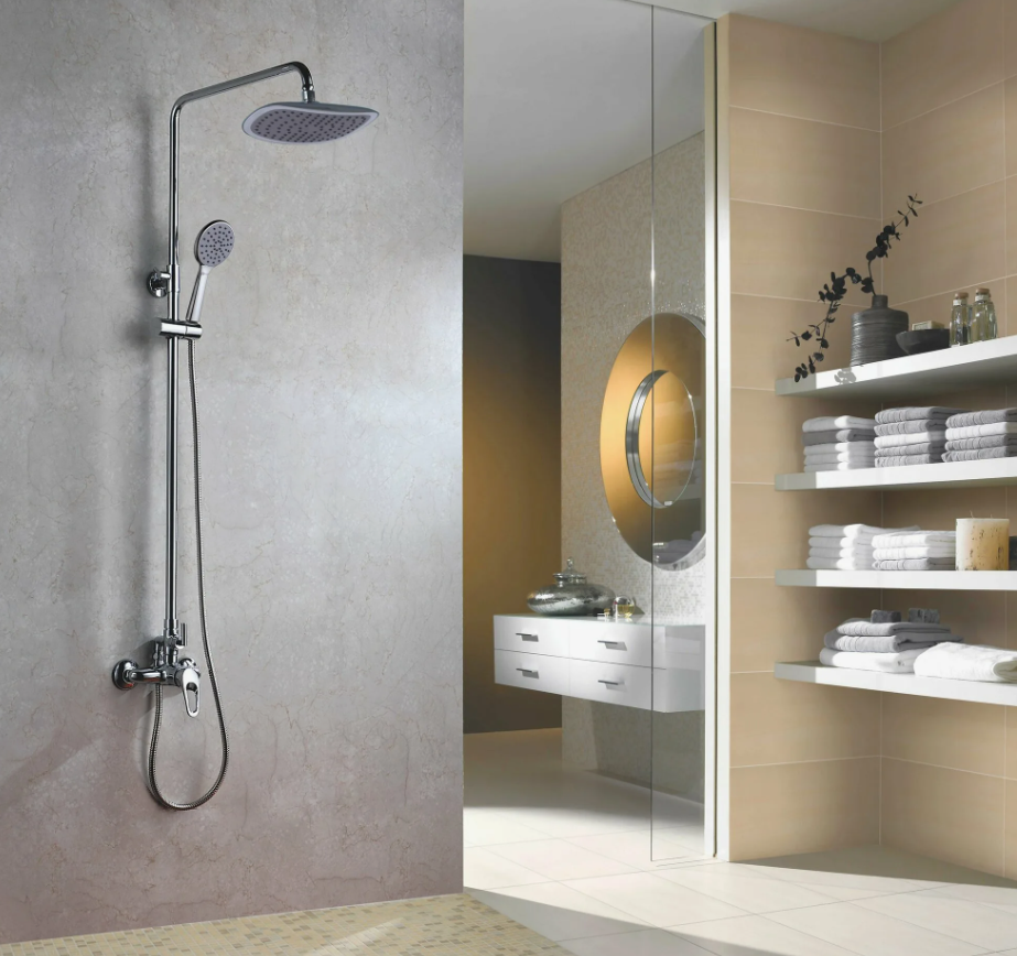 Сегодня популярны системы, где смеситель совмещён с душевой стойкой. Если вы задумываетесь, как выбрать смеситель с тропическим душем, учитывайте высоту потолков и место установки. Тропический душ — это большая лейка, создающая эффект мягкого дождя, а обычный душ компактнее и практичнее в маленьких ванных.