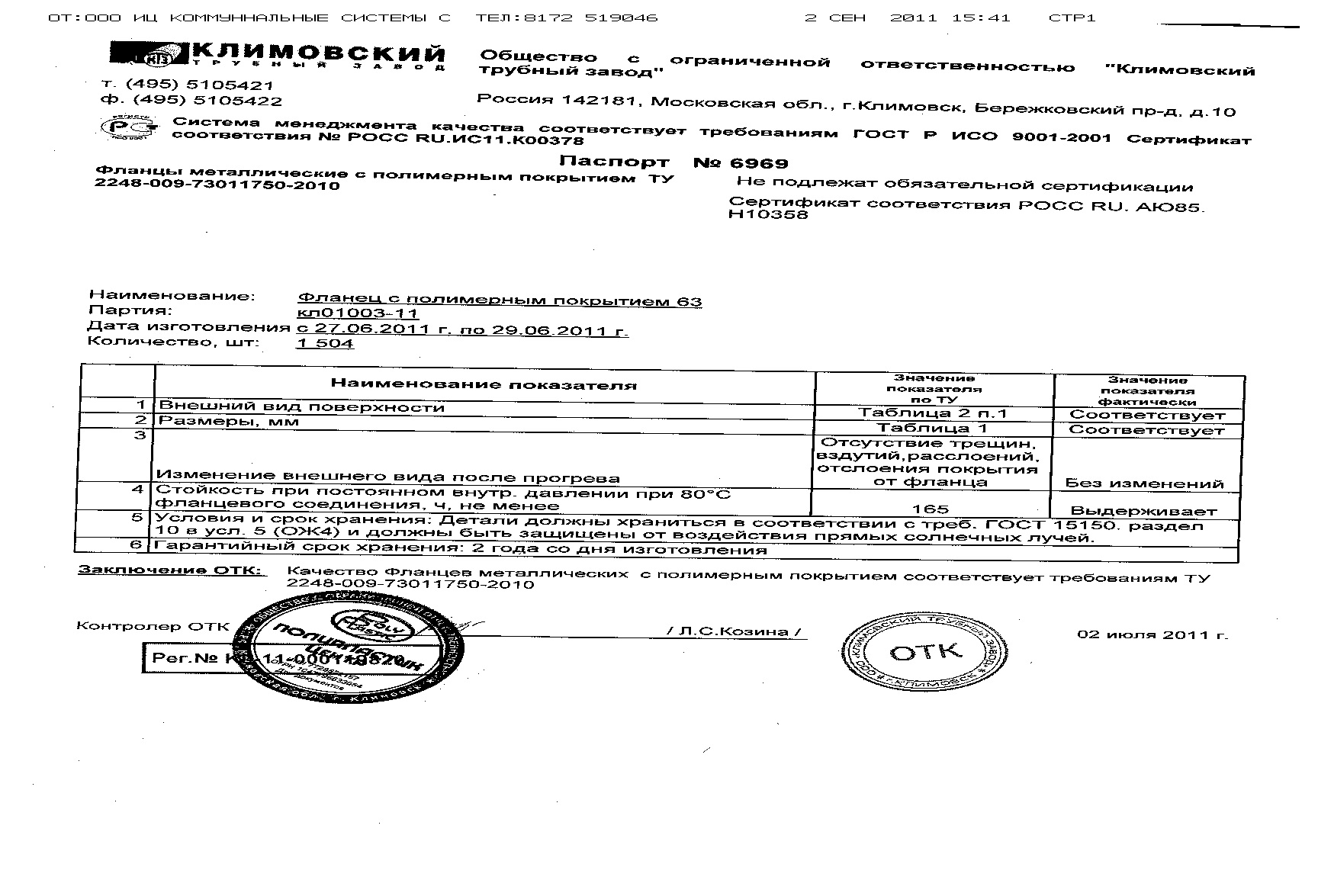 фланец Дпэ 180 Ру10 покрытие ППР расточ.