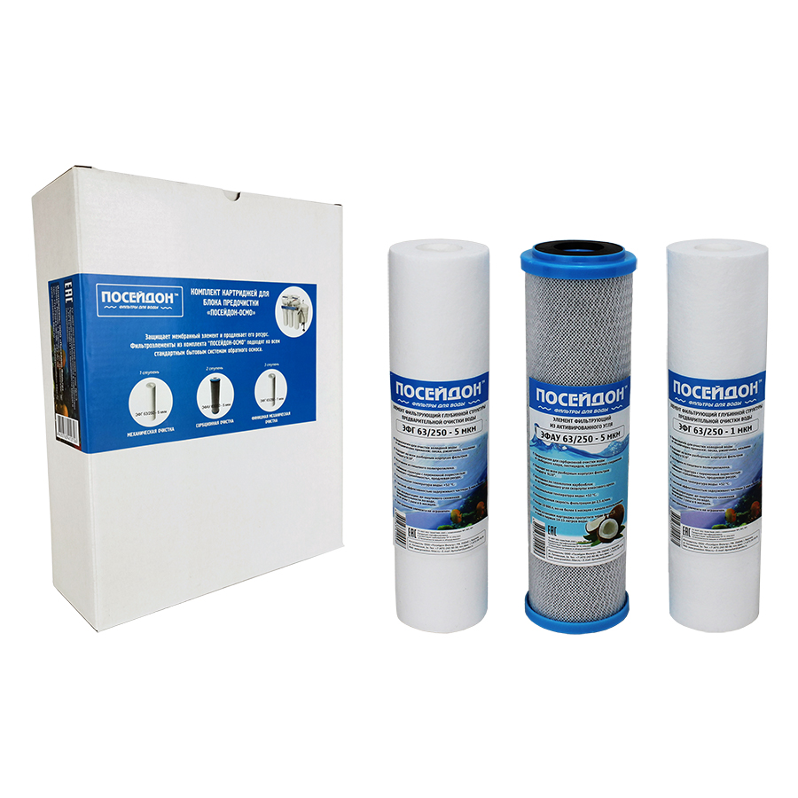 комплект картриджей ПОСЕЙДОН-ОСМО (ЭФГ 63/250-5мкм, ЭФАУ 63/250-5мкм, ЭФГ 63/250-1мкм)