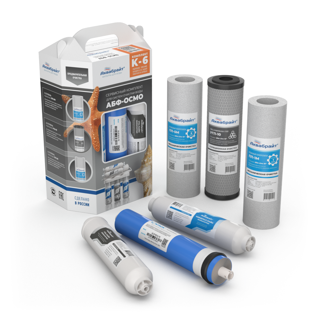 комплект картриджей К-6 c МЕМБРАНОЙ VONTRON АКВАБРАЙТ ПП-5М, УГП-10, ПП-1,УГА-ЛАЙН, УГА-МИНЕРАЛ