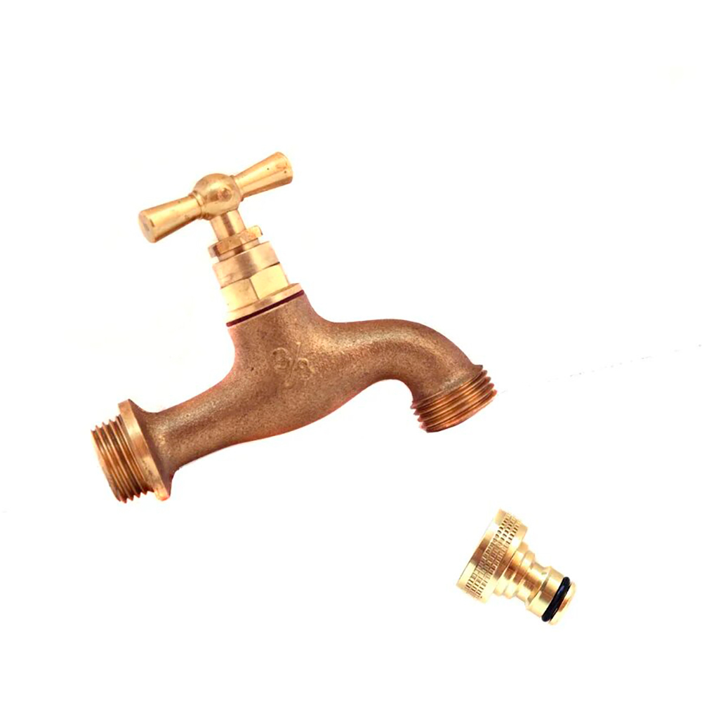 кран латунный садовый с вентелем 3/4"+быстросъём