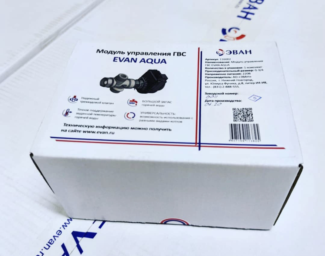 В июне 2020 г. компания ЭВАН выпустила на рынок собственную разработку - модуль управления ГВС EVAN AQUA.