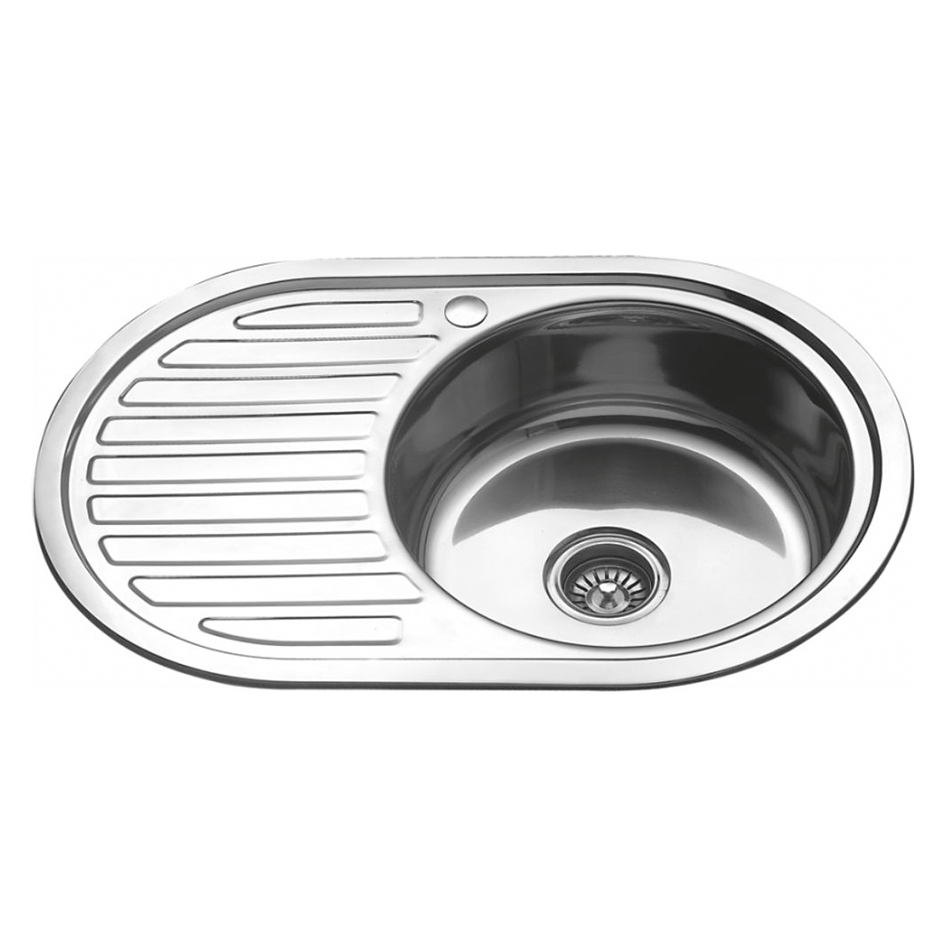 мойка нерж. врезная овальн. 570х450 мм глубина 180мм толщина ст. 0,6мм крепеж,упл.лента,сифон (УП12)