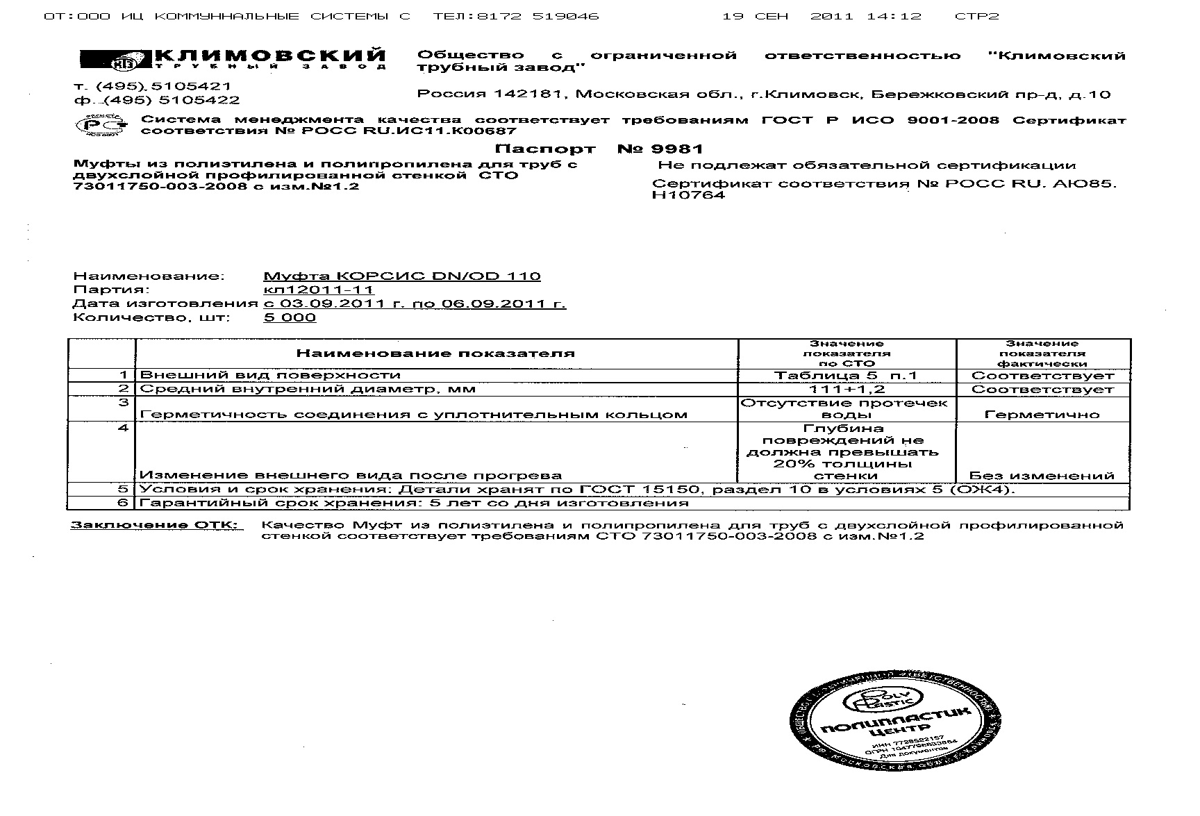 муфта 110мм Корсис