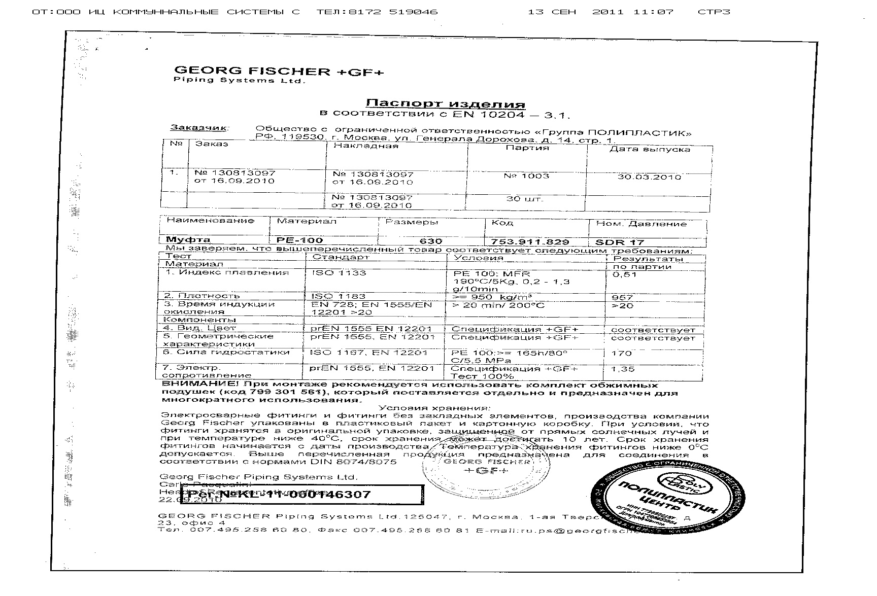 муфта эл/св 710мм ПЭ100 SDR17 GF