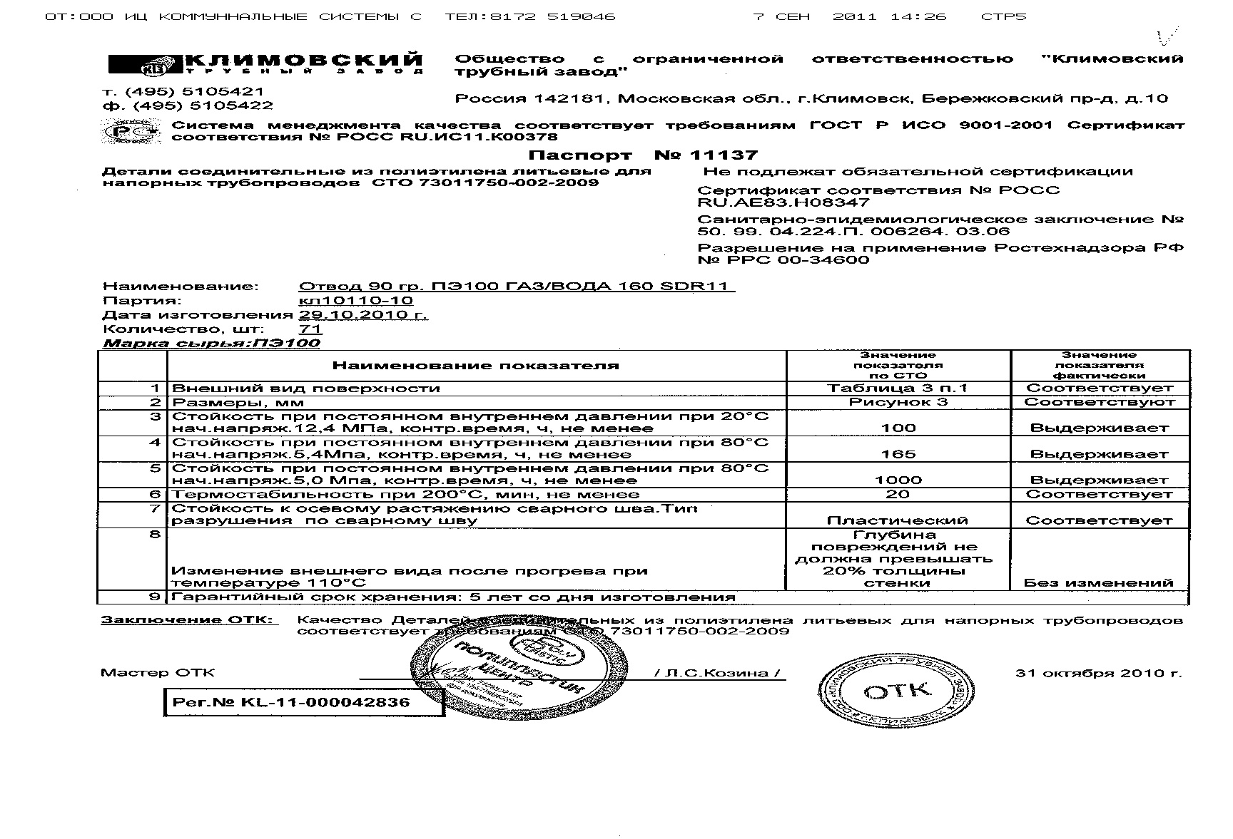 седелочный отвод эл/св 180х125 мм ПЭ100 SDR11 (с ответ.нижн.частью Сатурн)