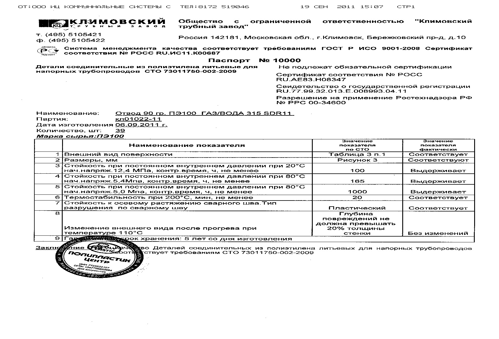 седелочный отвод эл/св 110х075 мм ПЭ100 SDR11 (с ответ.нижн.частью) накл. уход без возм. уст. фрезы