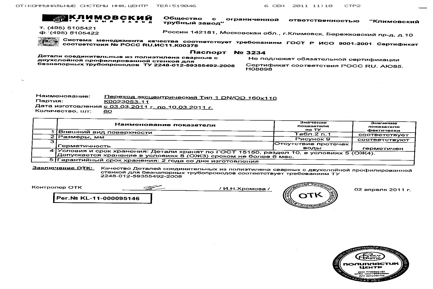 переход Корсис 160х160 ПЭ100 SDR17 св.
