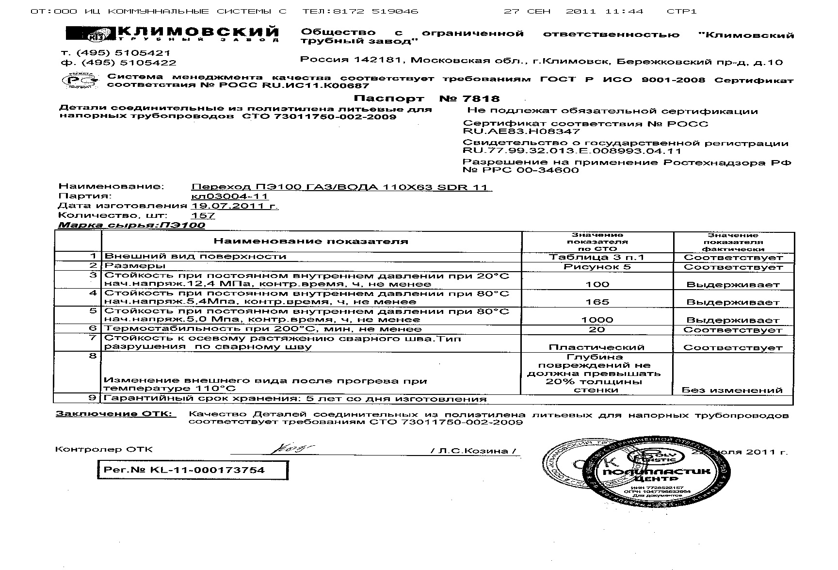 переход эл/св 110х063мм ПЭ100 SDR11 GF