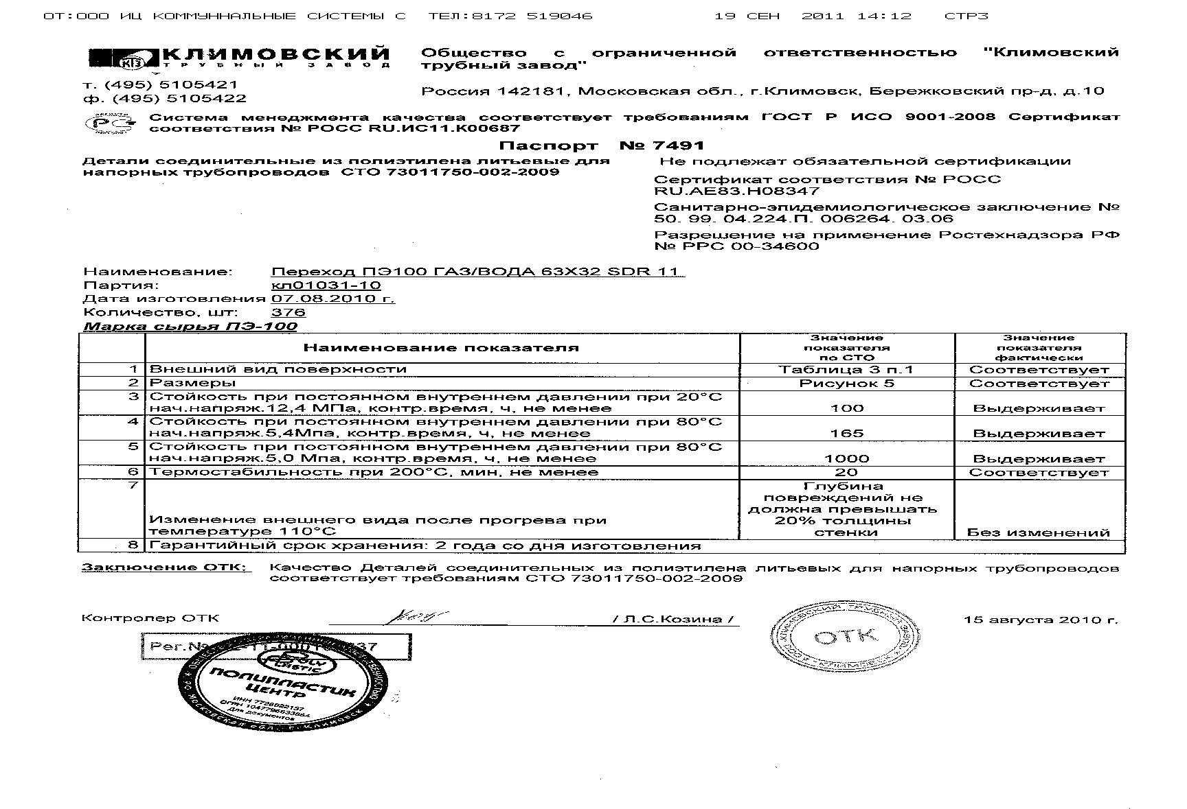 переход пэ/сталь 090х089мм ПЭ100 SDR11 вода