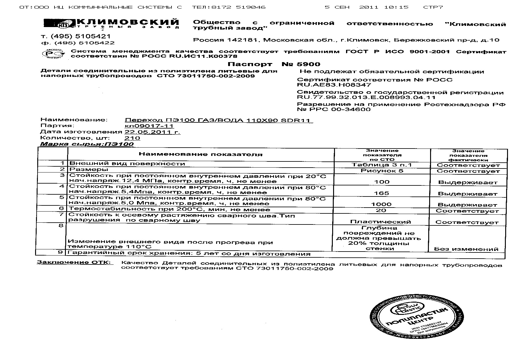 переход редукционный 110х090 мм ПЭ100 SDR11 удл.