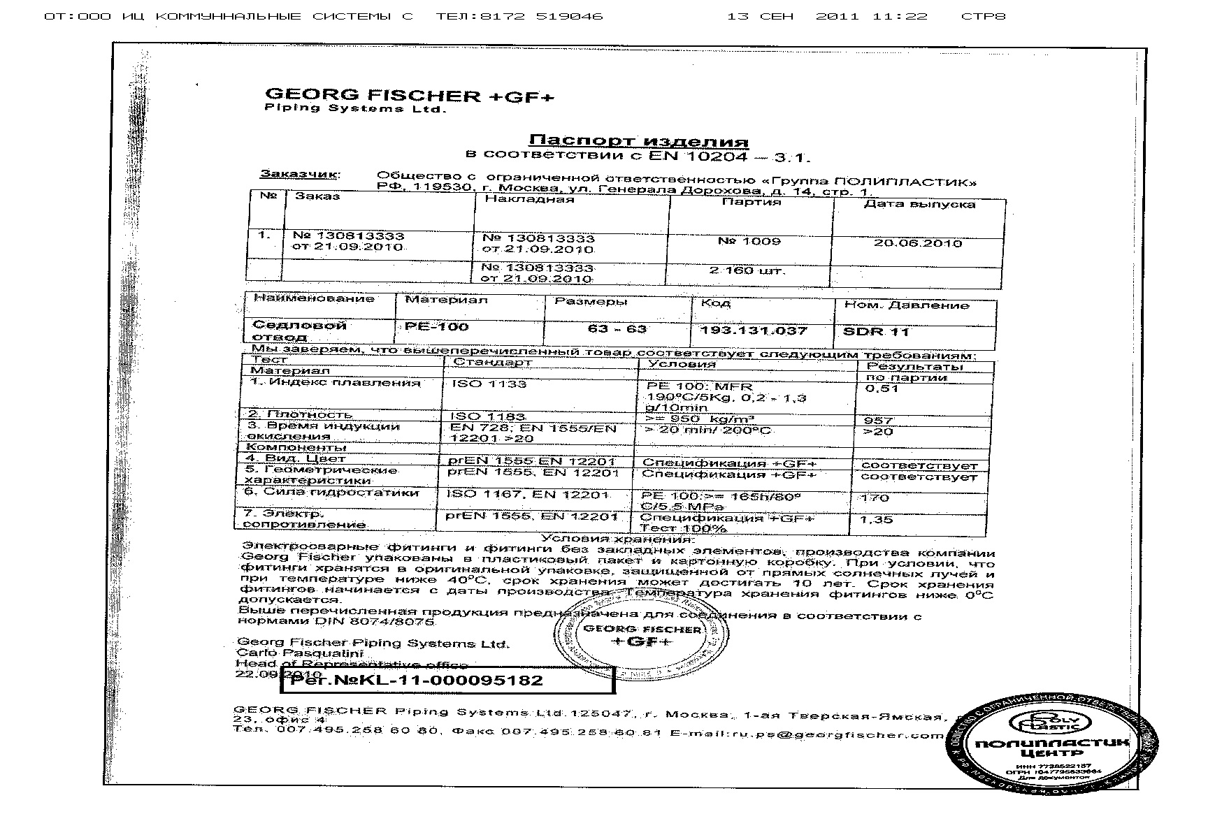 седелочный отвод эл/св 160х063 мм ПЭ100 SDR11 (с ответ.нижн.частью, возм. уст. фрезы) ГПП