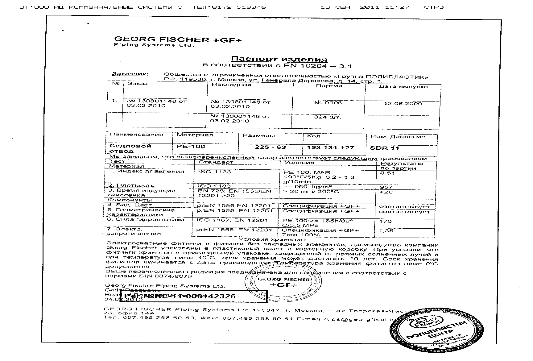 седелочный отвод эл/св 063х063 мм ПЭ100 SDR11 (с ответ.нижн.частью, возм. уст. фрезы) ГПП