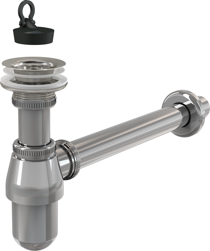 сифон для умывальника без выпуска 1 1/4 хром латунь отвод с гор.трубкой 41см регулир. CAREIS Wirquin