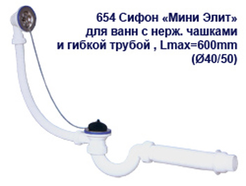сифон для ванны 1 1/2" с нерж. выпуском Дн70 с переливом без гибкой трубы, рег. Е250 АНИ пласт