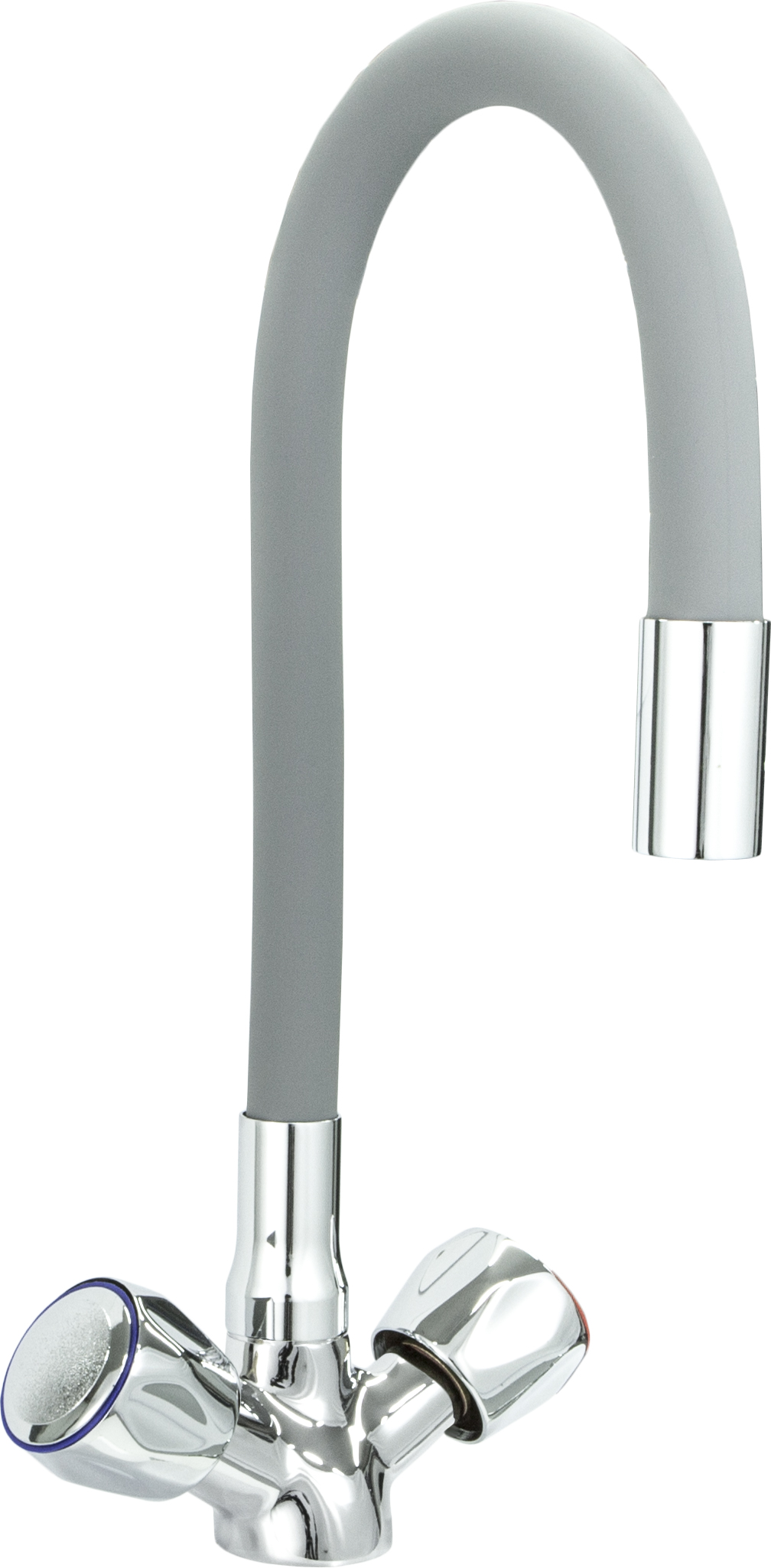 смеситель для мойки однорычажный излив гибкий D24 серый картридж D35мм ЦС-СМ 27/2г М42(без подводки)