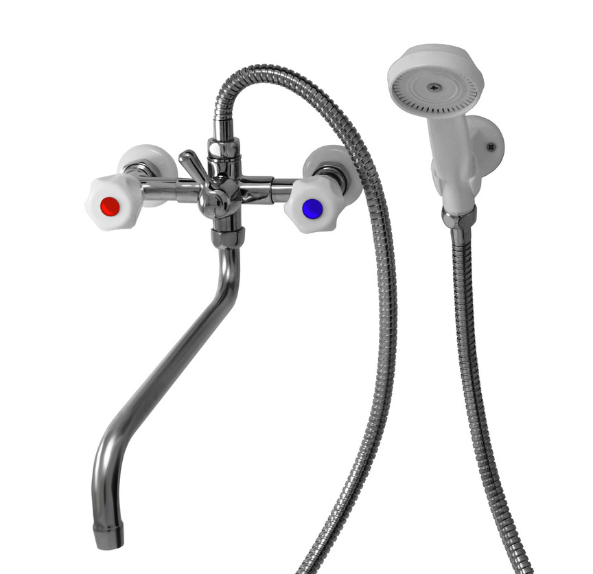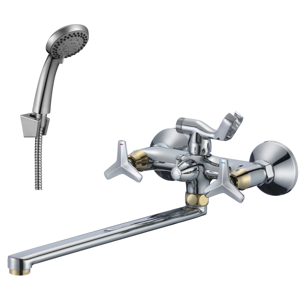 смеситель в ванну двухвентильный излив 350мм с лейкой и шлангом 150см G02-84 ROSSINKA