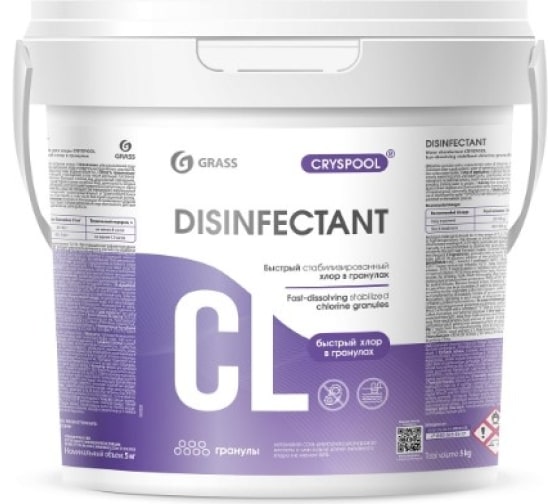 средство для дезинфекции воды быстрый стабилиз. хлор в гранулах 5 кг GRASS CRYSPOOL