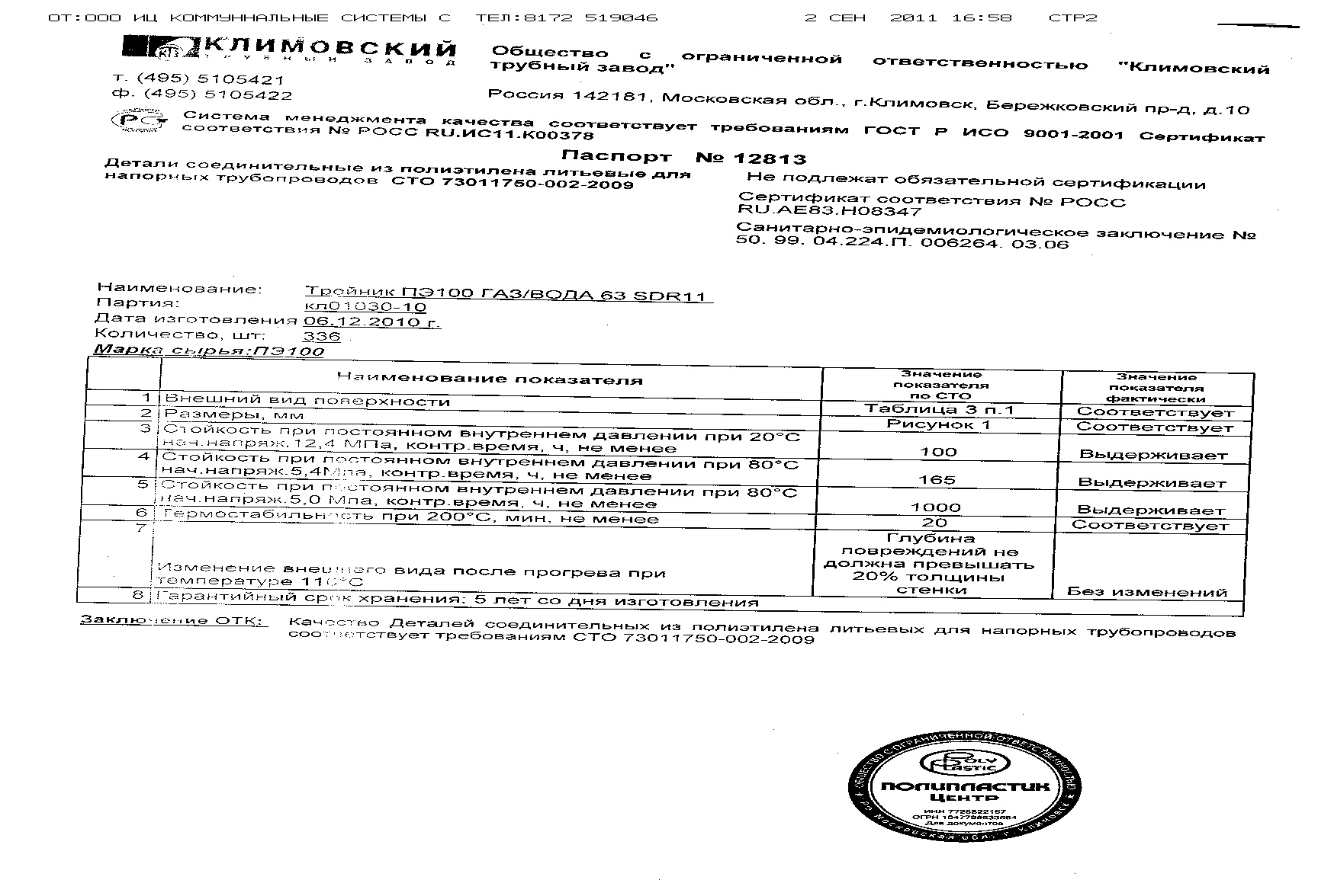 тройник редукц. 225х160мм ПЭ80 SDR11 РАСПРОДАЖА