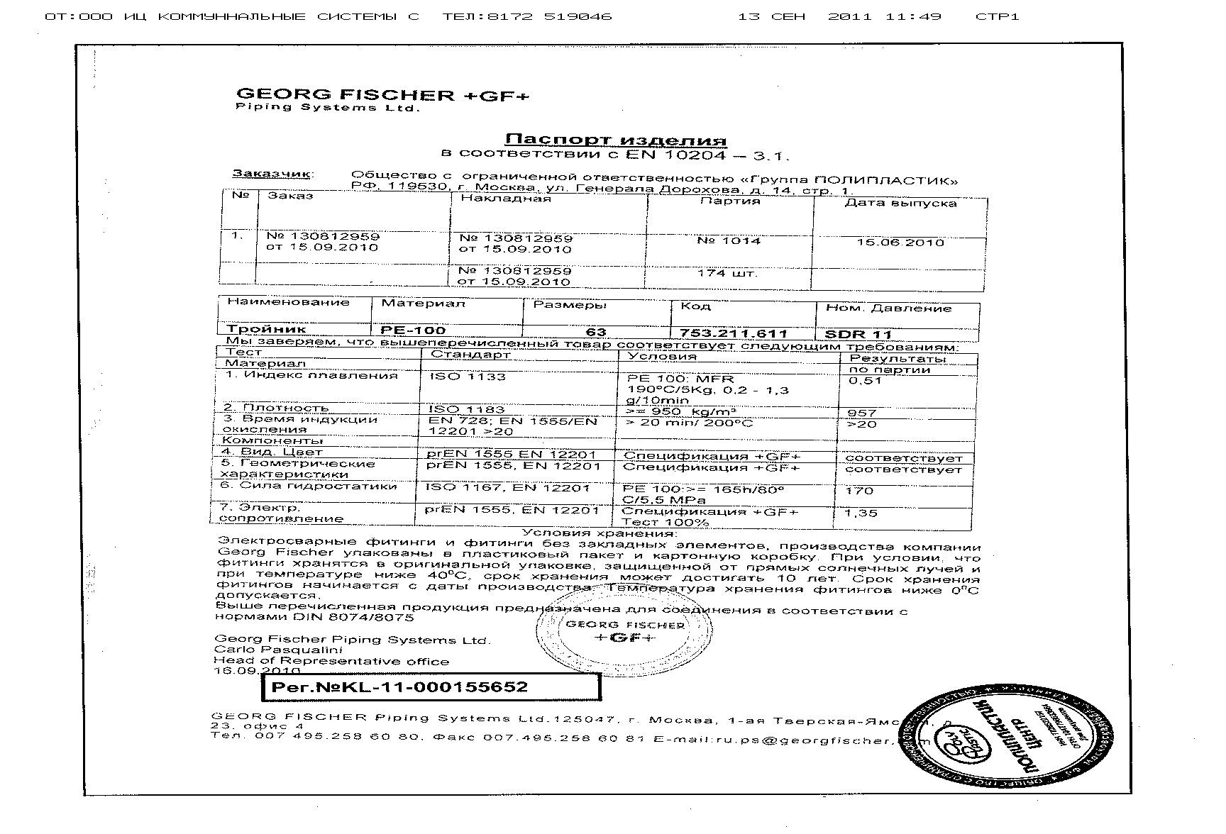 тройник эл/св 90гр. 063мм ПЭ100 SDR11 GF