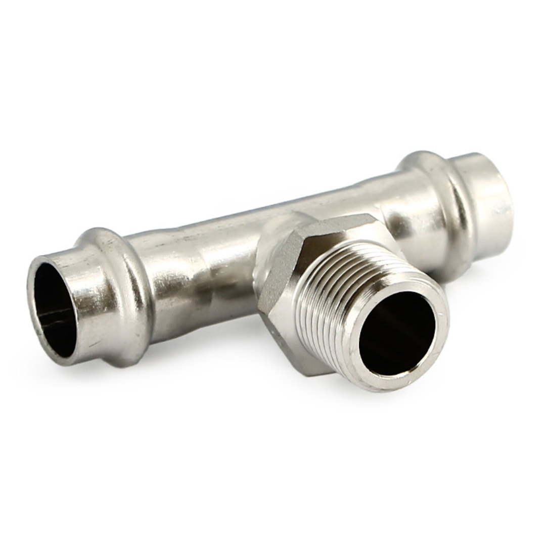 Тройник пресс для нерж. трубы с переходом на НР 22×3/4"×22