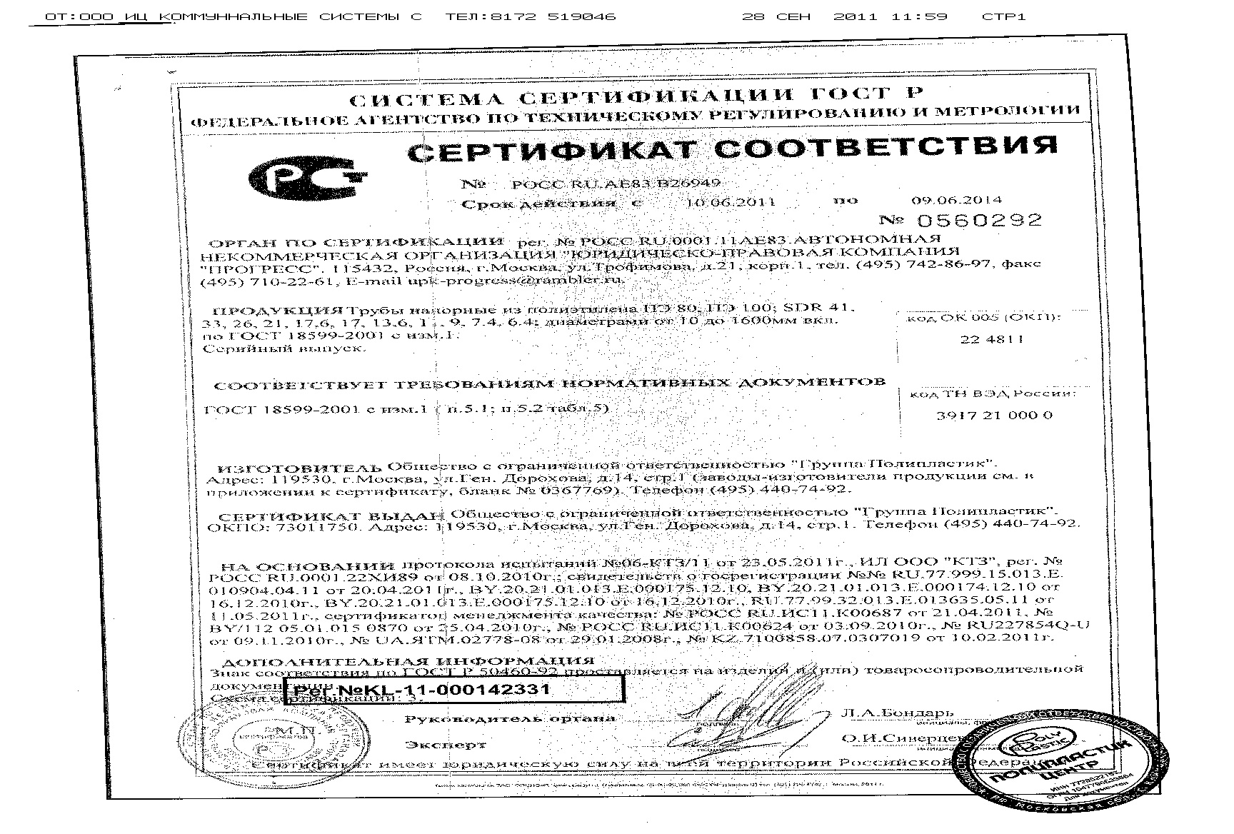 труба газ 500х45,4 PN10 ПЭ100 SDR11