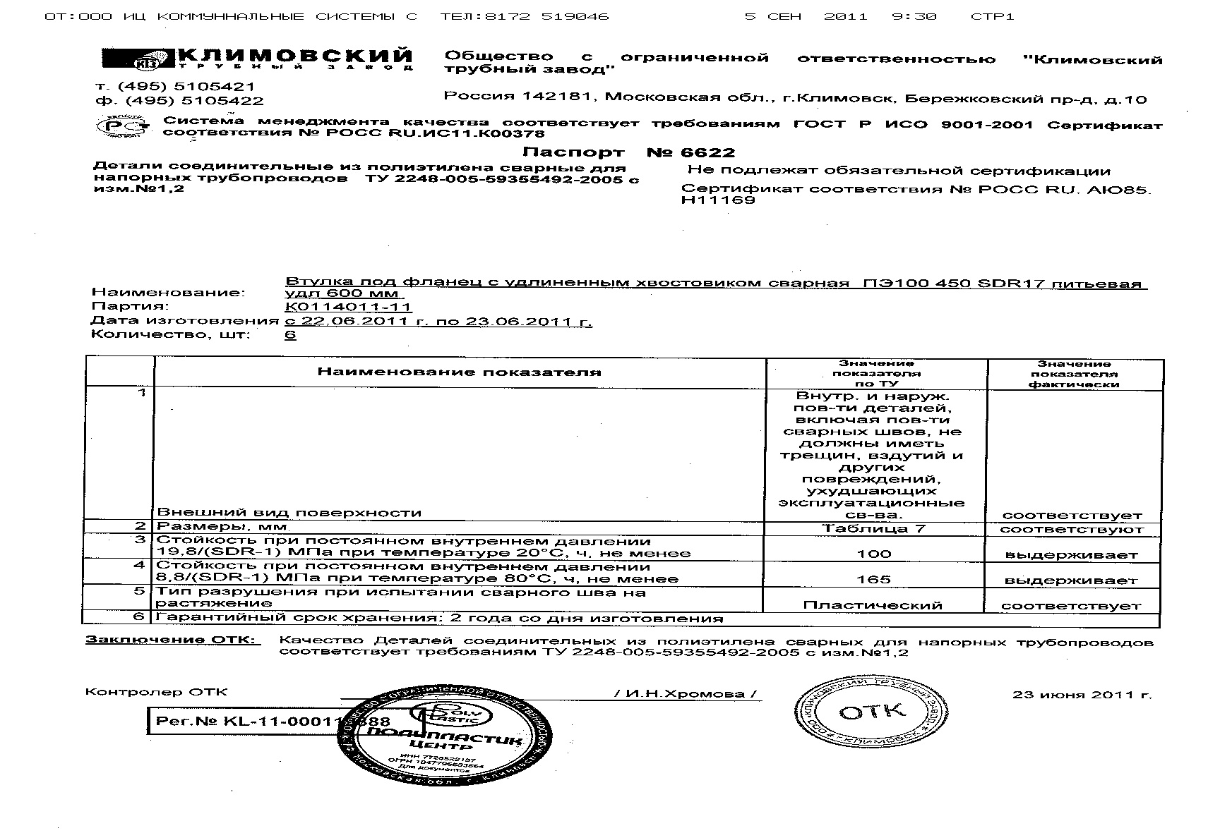 втулка под фланец 500мм ПЭ100 SDR17 удл.300мм св.